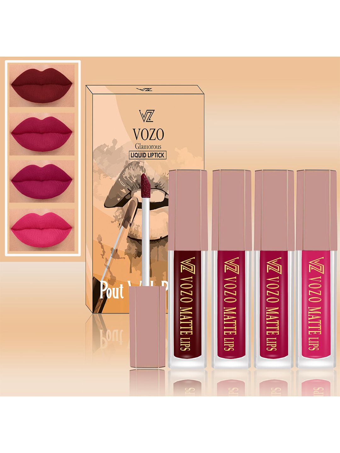 VOZO Set Of 4 Soft & Comfortable Matte Finish Liquid Lipsticks-103-105-106-202