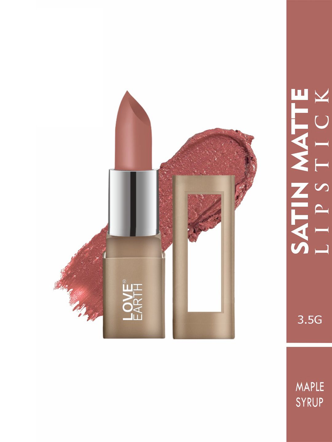 LOVE EARTH Satin Matte Lipstick Enriched With Almond Oil & Vitamin E- 3.5 g- Maple Syrup