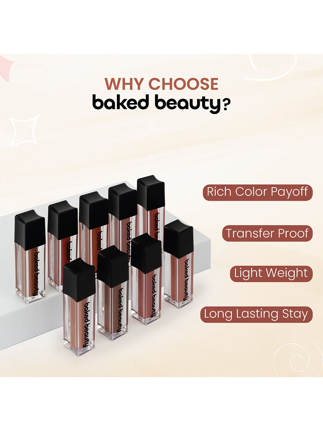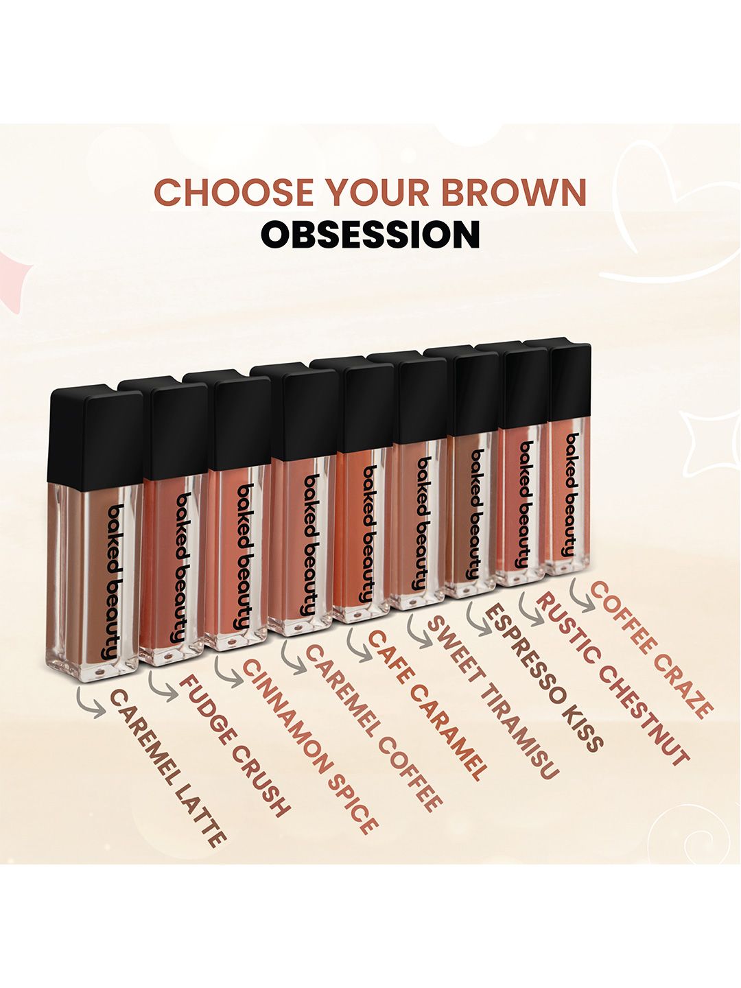 Baked Beauty Set Of 9 Liquid Matte Lipstick With Jojoba Oil - 1.5 ml Each - Brown Palette