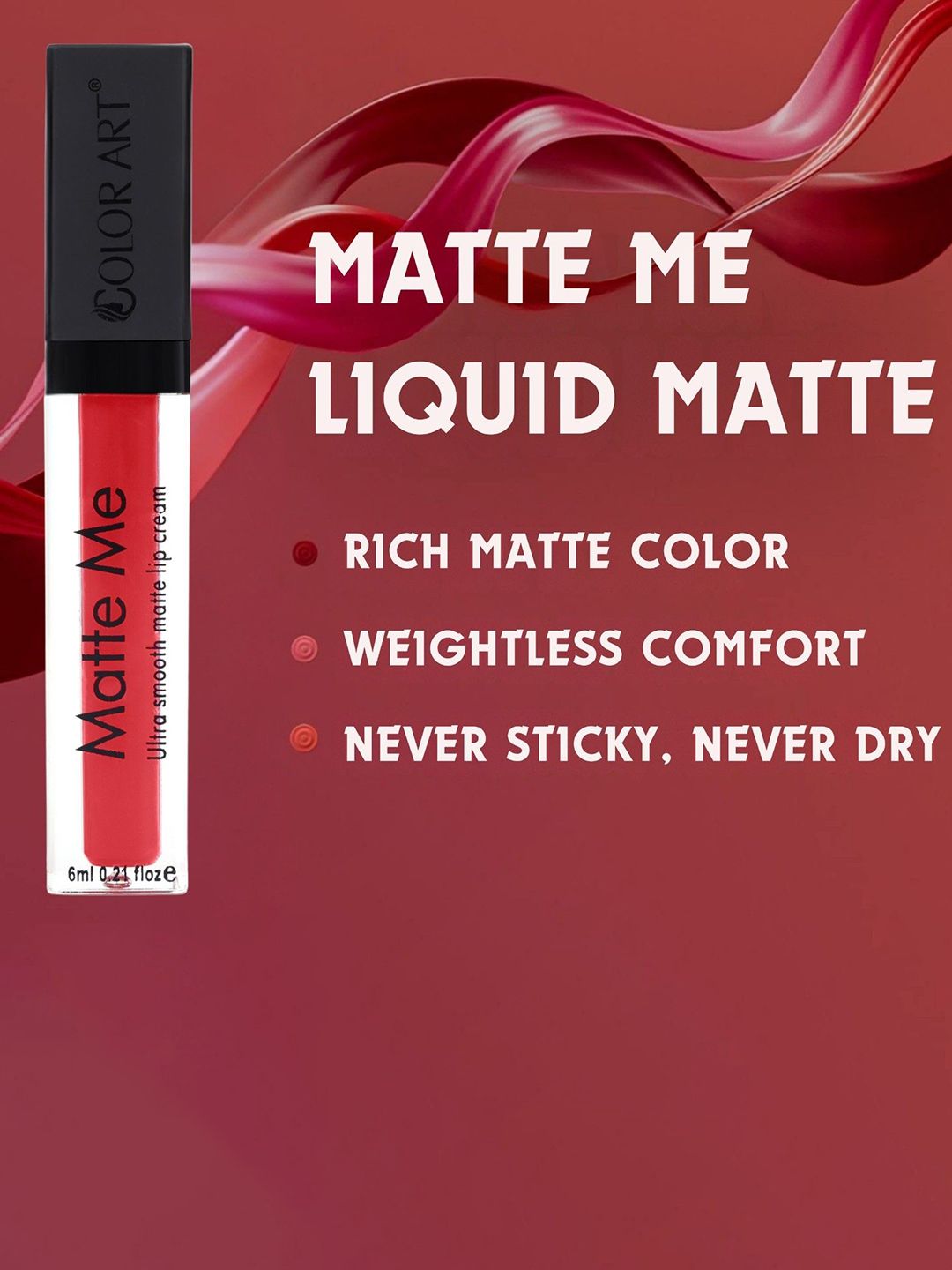 Color Art Matte Me Waterproof Liquid Lipstick - 6 ml - Dark Maroon