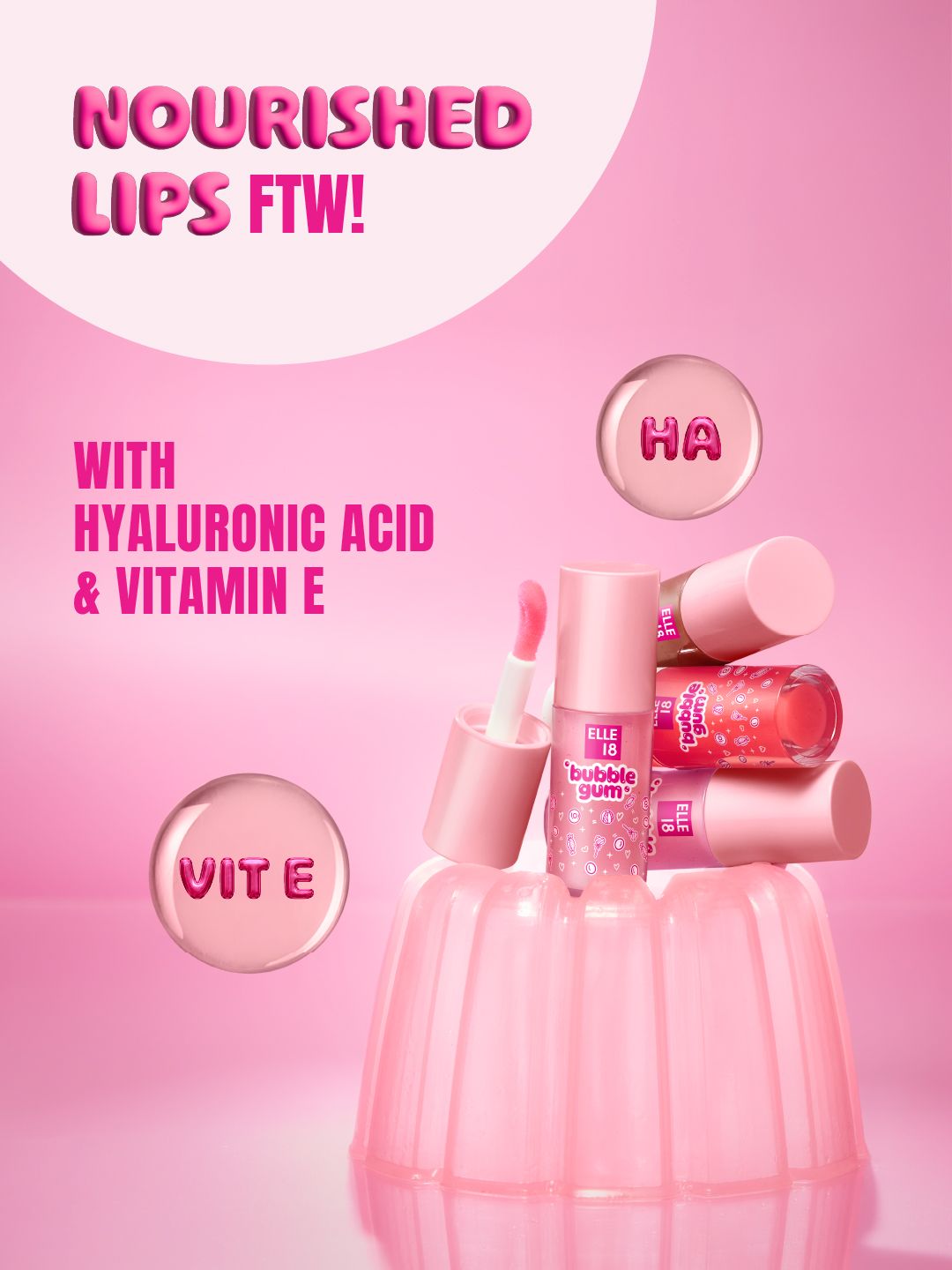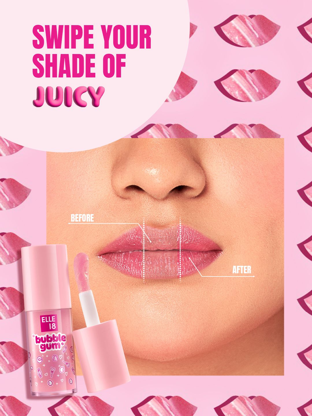 ELLE 18 Bubblegum Pigmented Lip Gloss Jelly for Fuller Lips 5ml - Berry