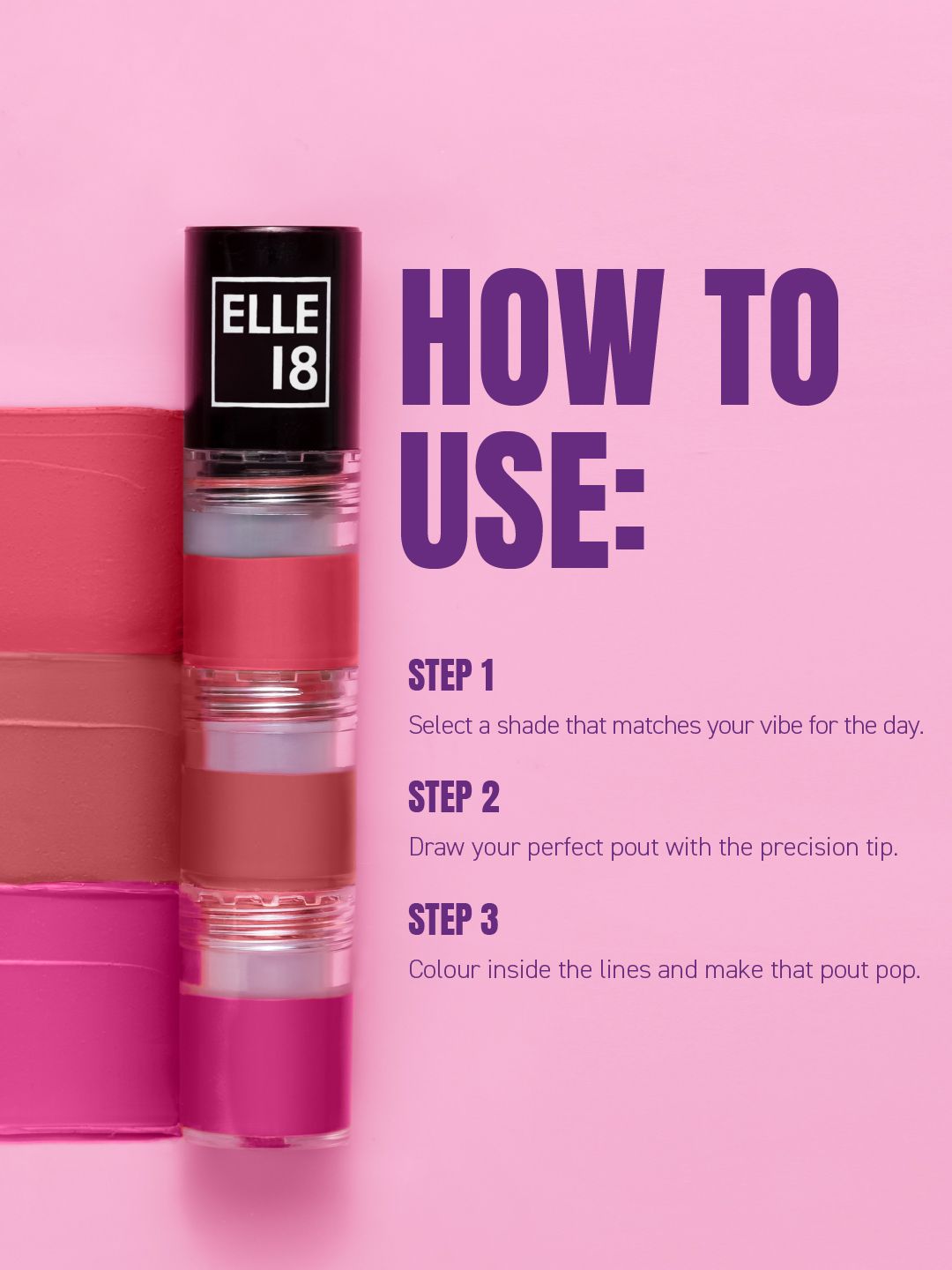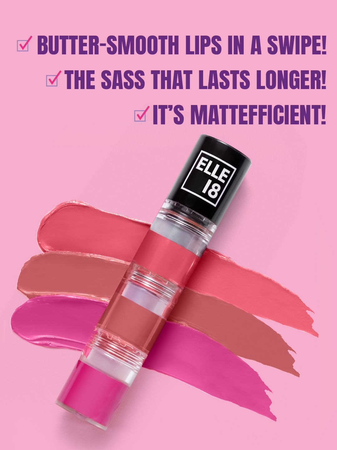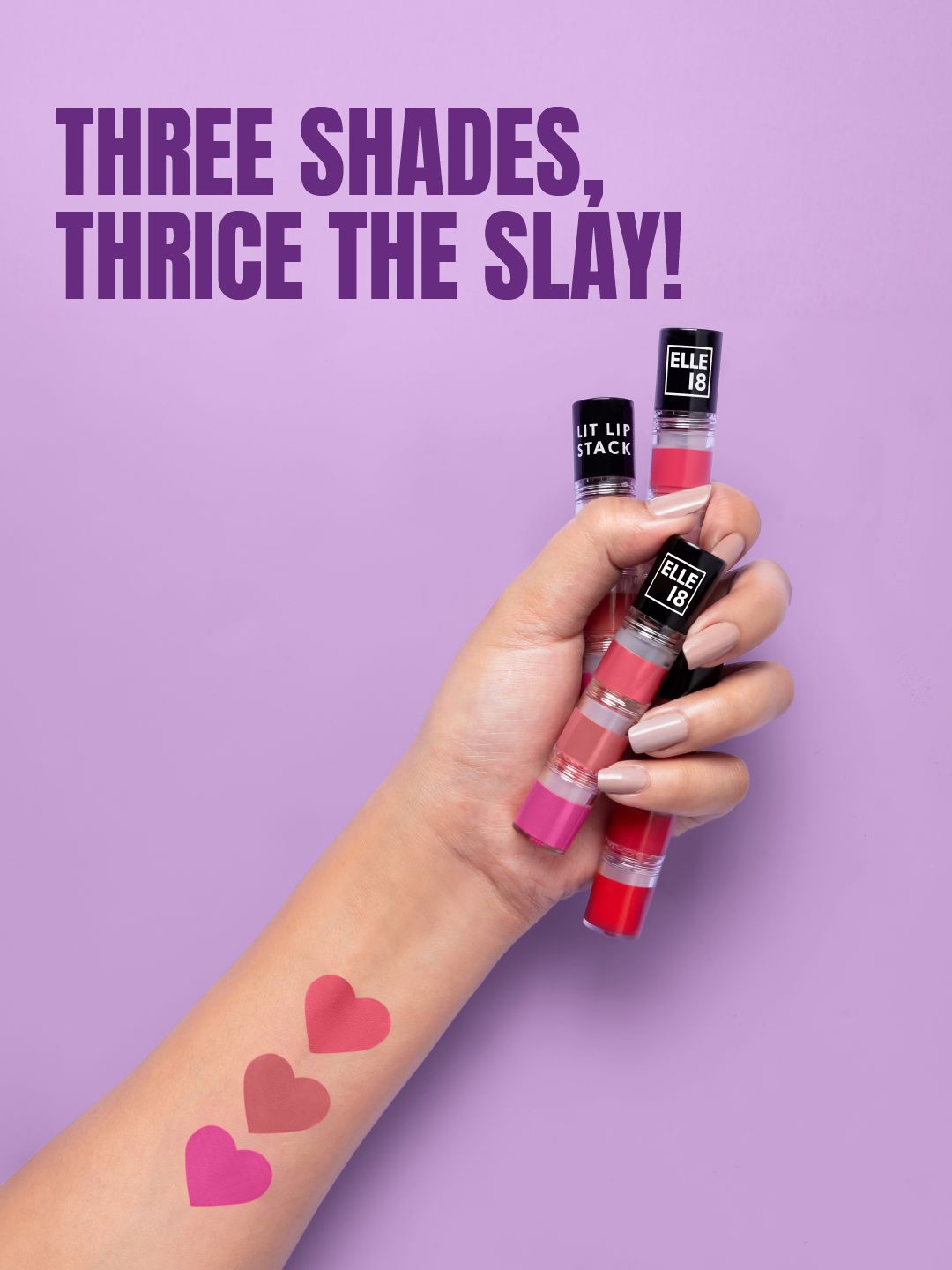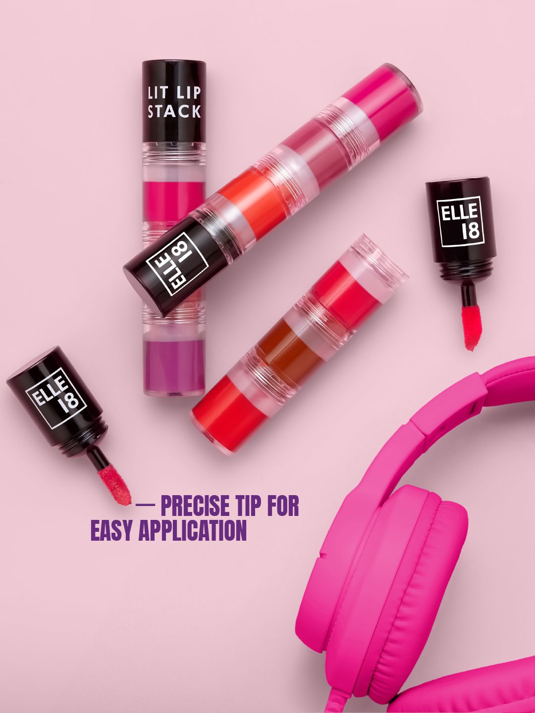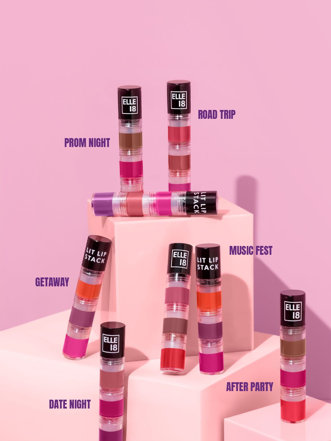 ELLE 18 Lit Lip Stack 3 in 1 Matte Liquid Lipstick For Intense Payoff 4.5ml - Prom Night