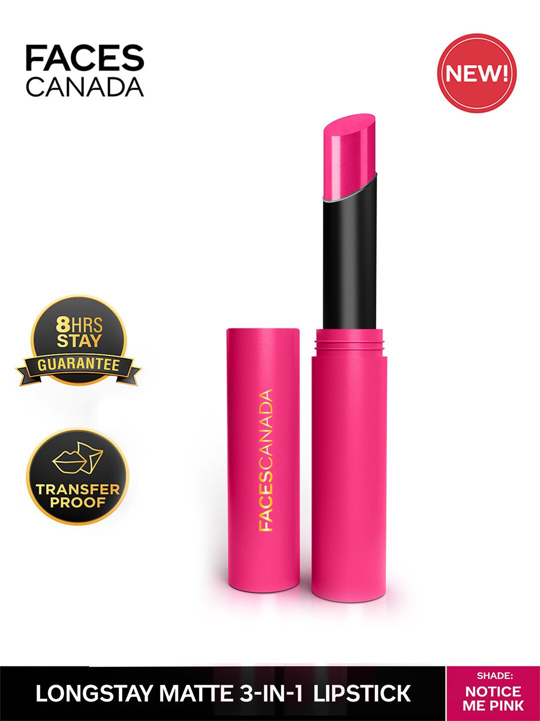 FACES CANADA 8Hr Long Stay 3-In-1 Primer-Infused Matte Lipstick - Notice Me Pink 06