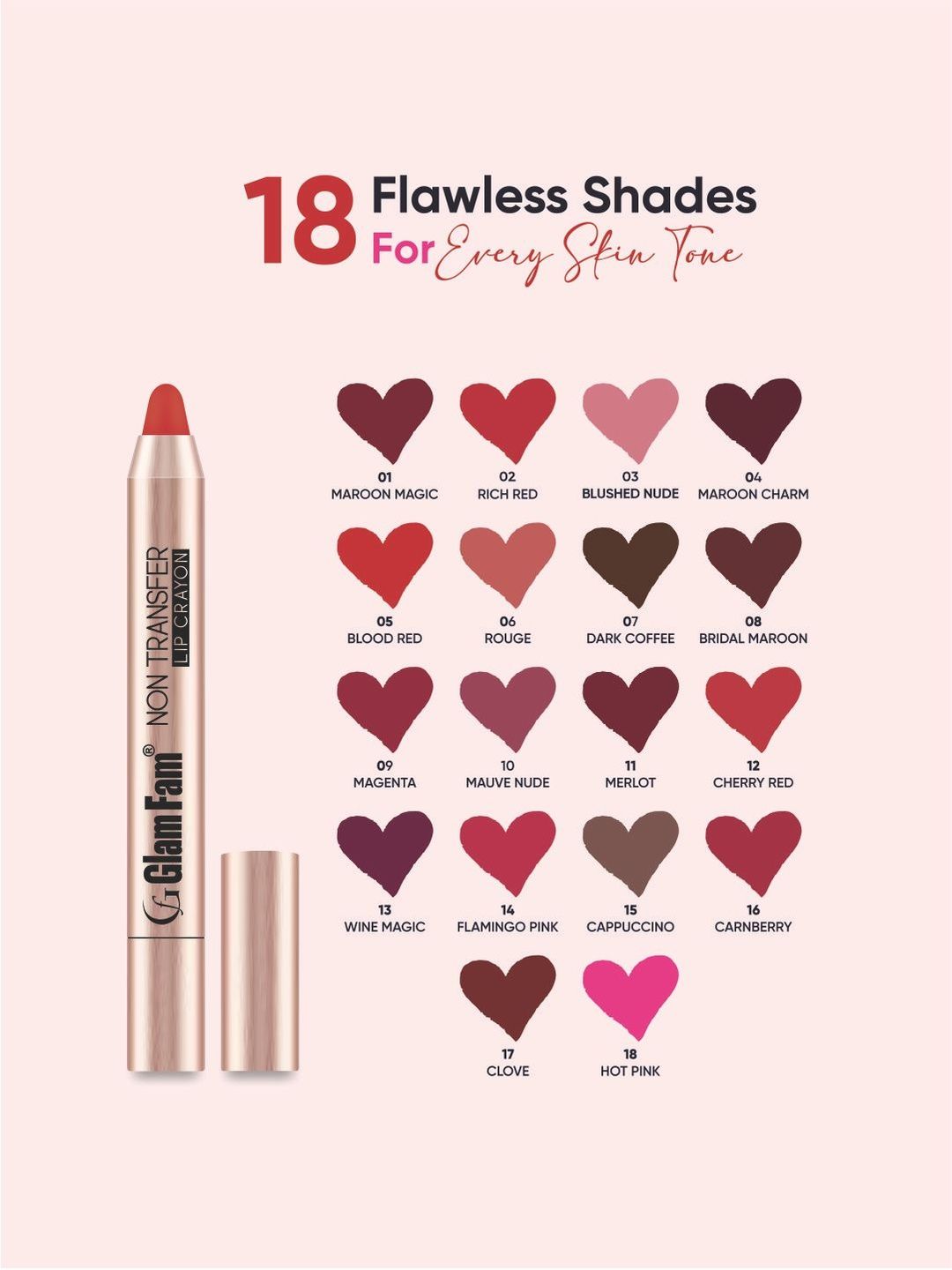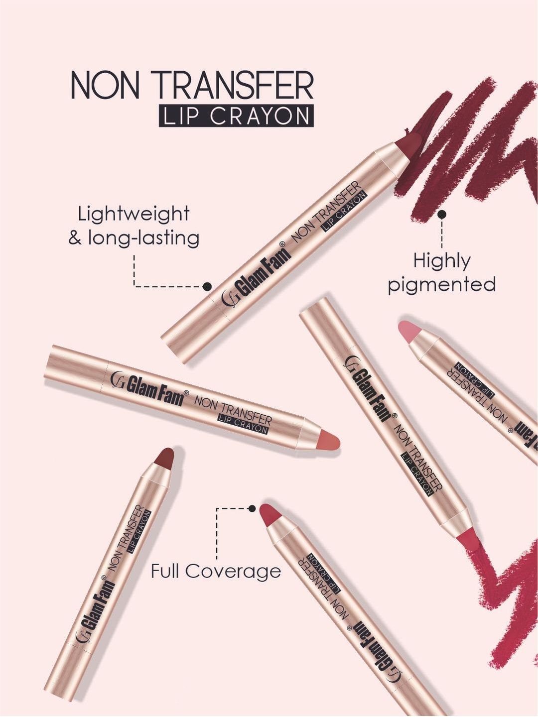 GlamFam Non Transfer & Long Lasting Lip Crayon Lipstick - Hot Pink 18