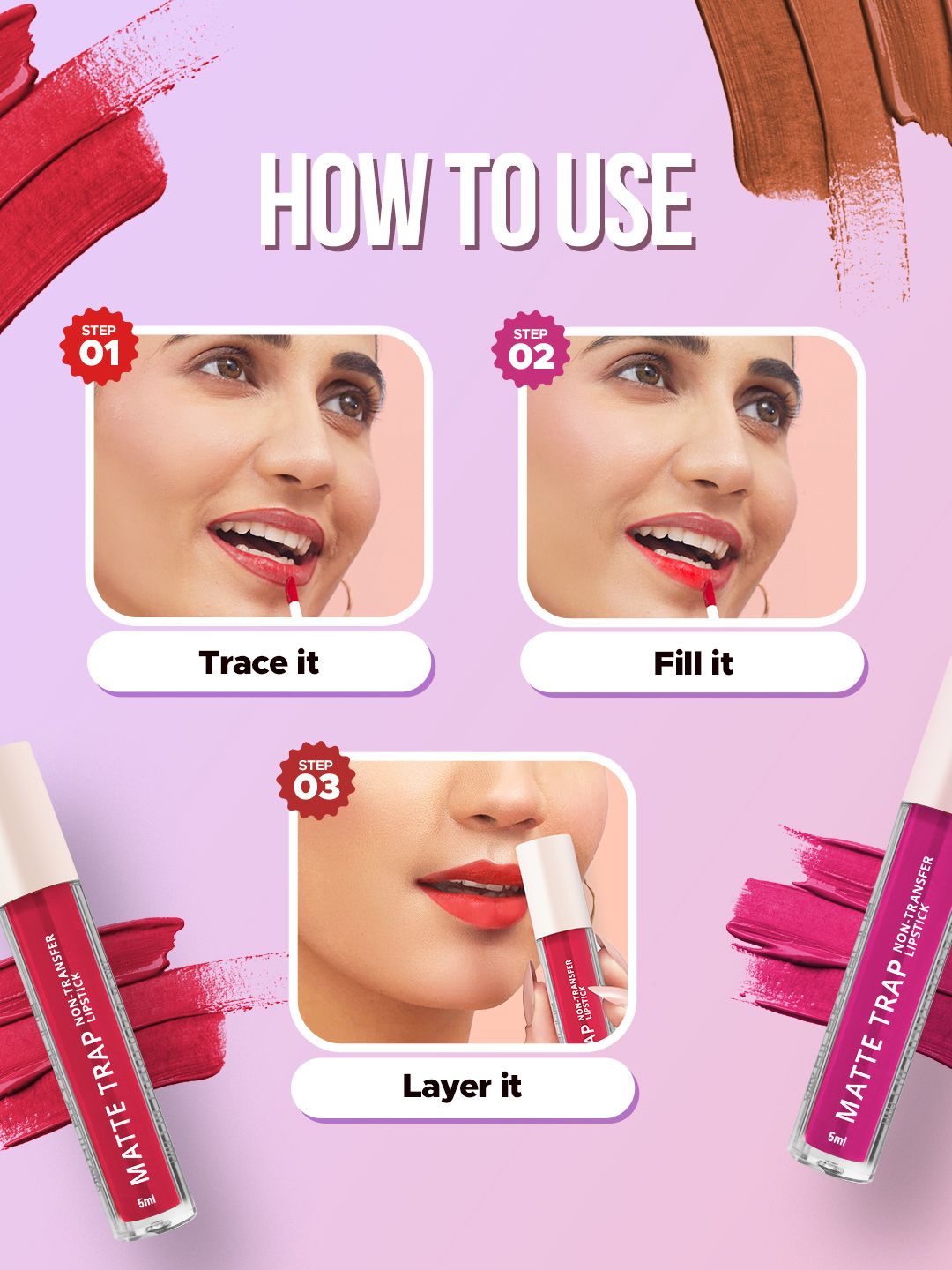 Hilary Rhoda Matte Trap Non Transfer Waterproof Liquid Lipstick 5ml- Heat Pink Shade No.08