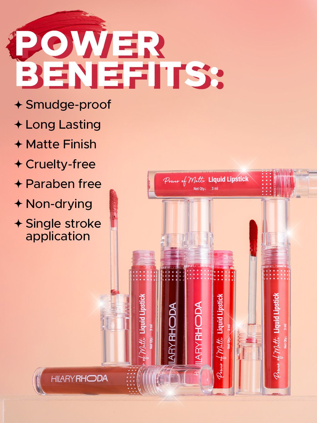 Hilary Rhoda Power Of Matte Liquid Lipstick Long Lasting 3ml- Make Me Mocha -01