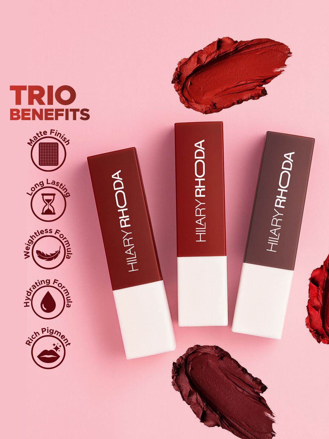 Hilary Rhoda Set Of 3 Matte Finish Lipstick- 3g Each -lous Trio- 03