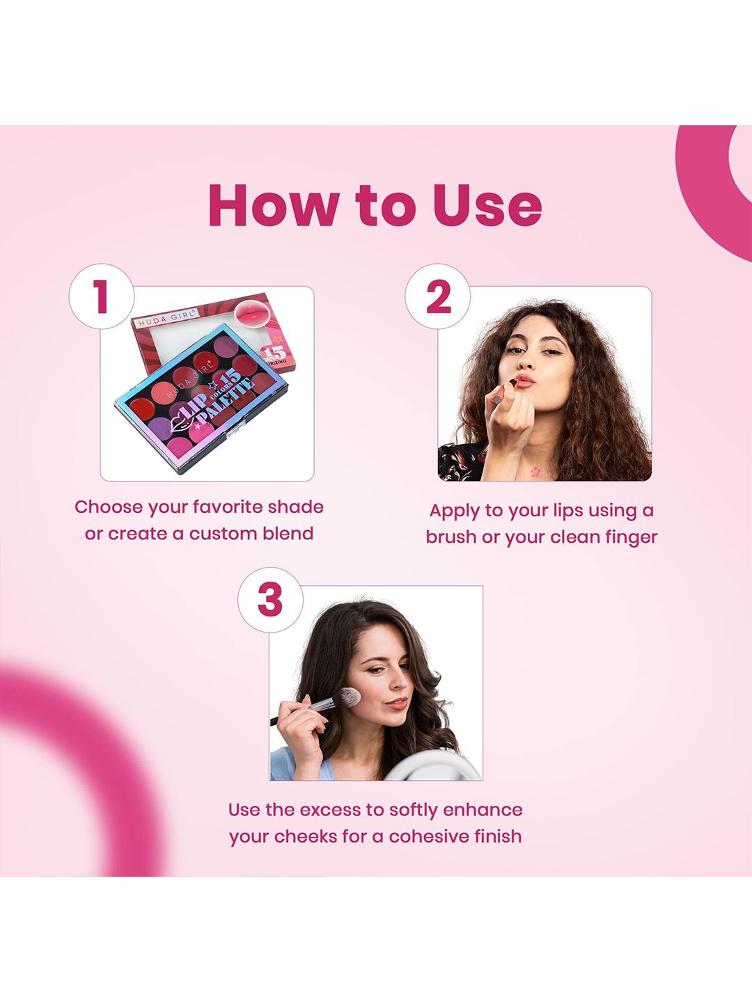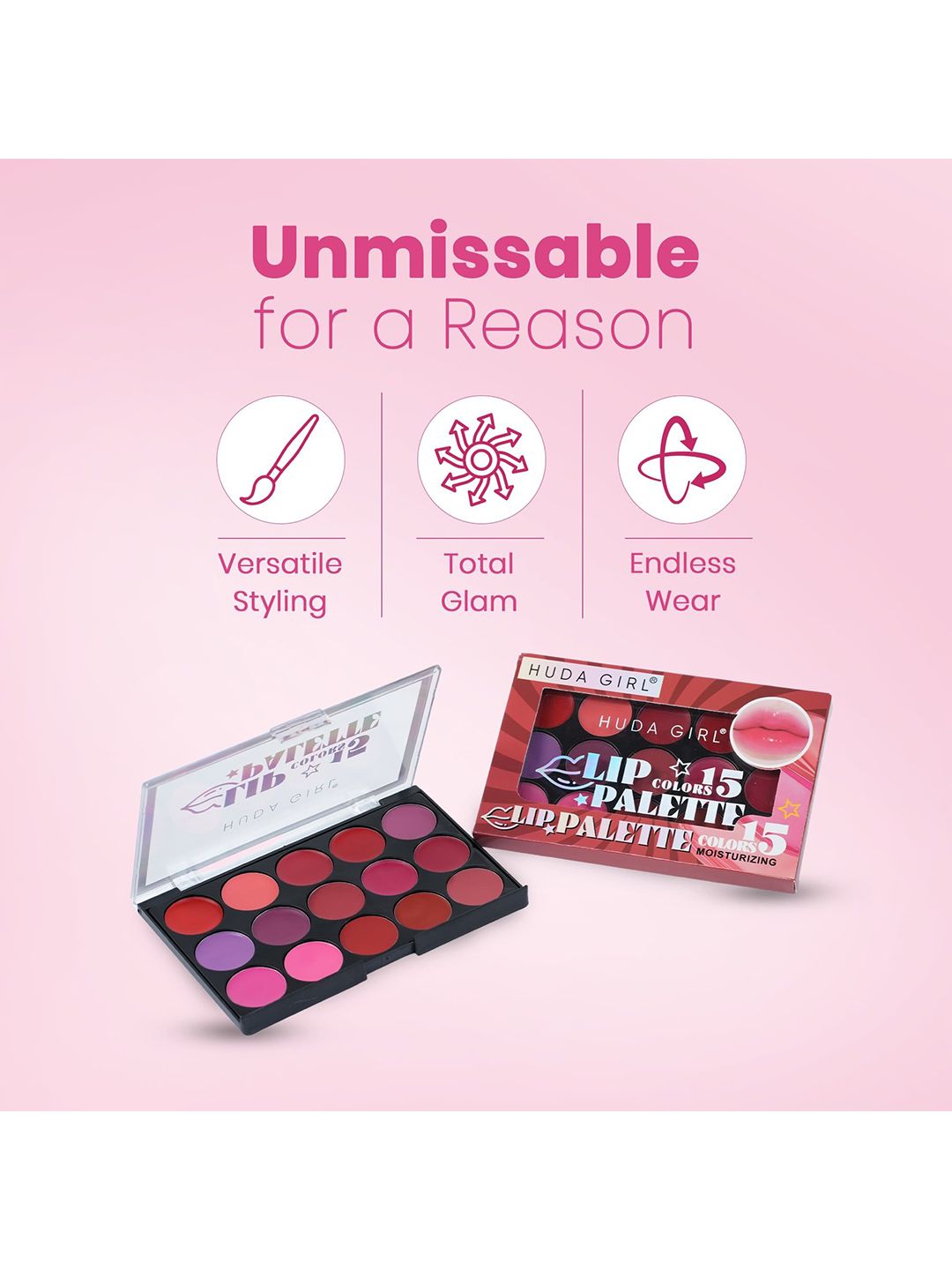 Huda Girl 15 Shades Long Lasting Lipstick Palette- 18 g- Multicolor