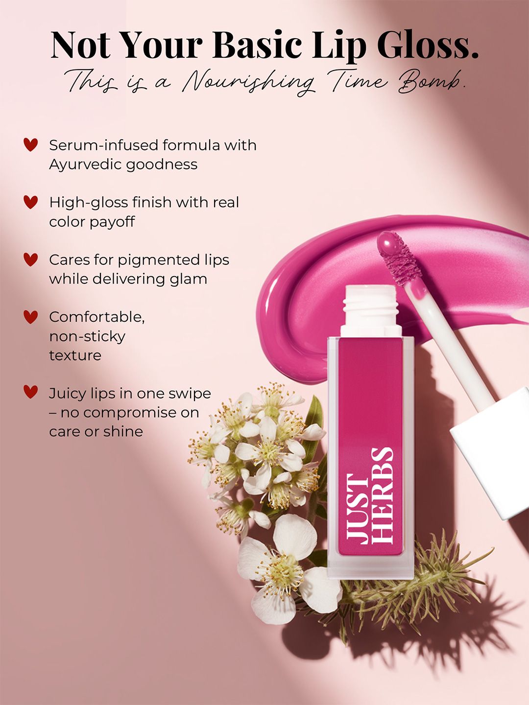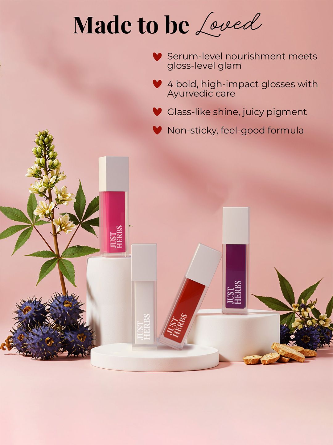 Just Herbs Set Of 4 Smooth & Shiny Serum Infused Lip Glosses-1ml Each- Deep Love