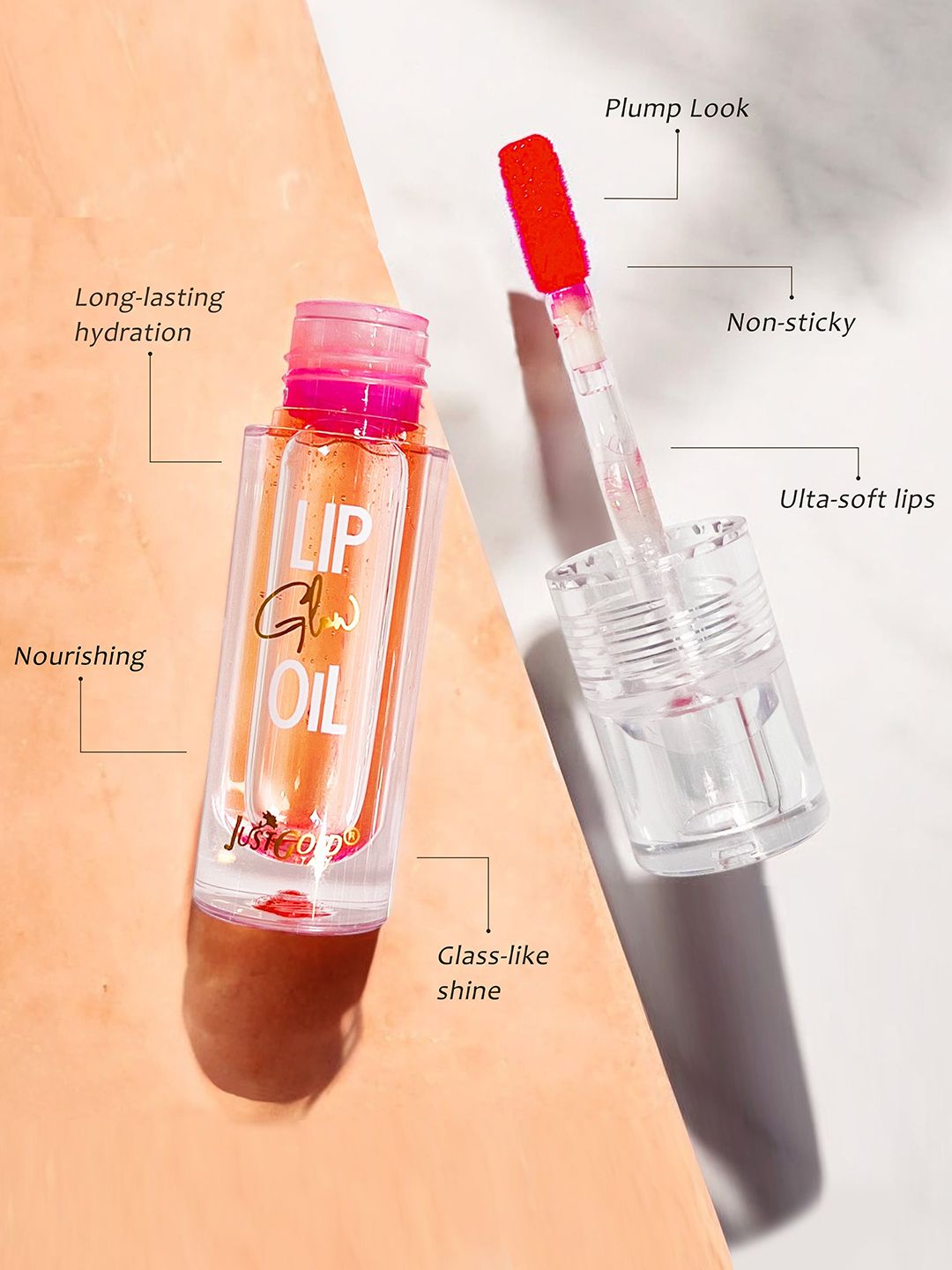 JUSTGOLD Long Lasting Lip Glow Oil With Vitamin E & Jojoba Oil - 4 ml - Crystal - 01