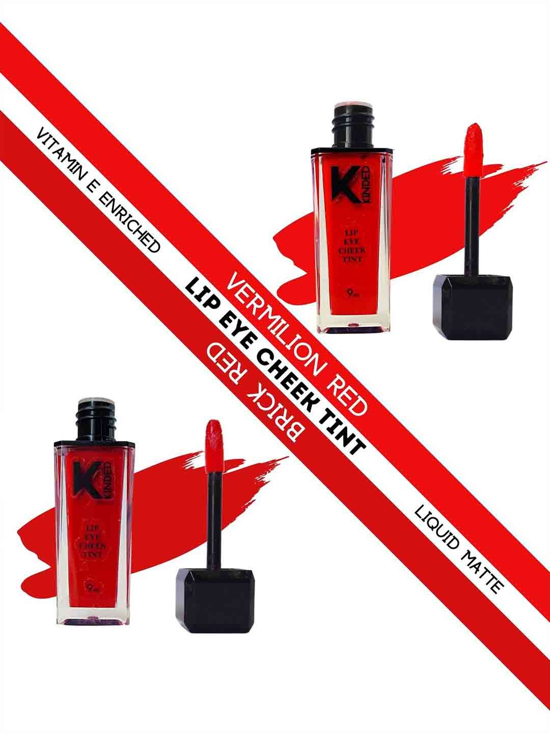 KINDED Set of 2 Lip Eye Cheek Tint with Vitamin E - Vermilion Red 03 & Brick Red 04