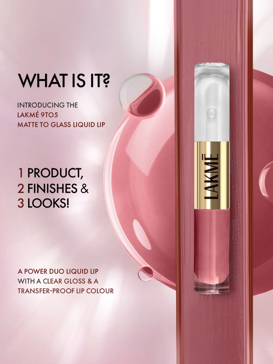 Lakme 9to5 Matte To Glass 2 in 1 Transferproof Liquid Lip Color 7.6ml - Brown Sugar MB02