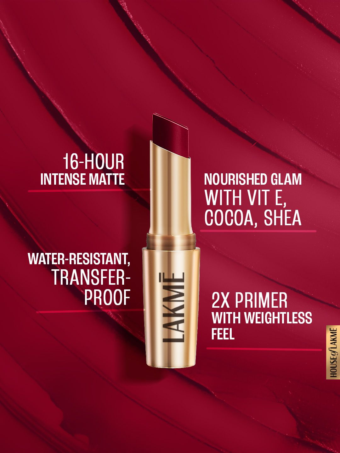 Lakme 9to5 Powerplay Priming Matte Lipstick 3.6g - Lasts 16hrs - Burgundy Passion