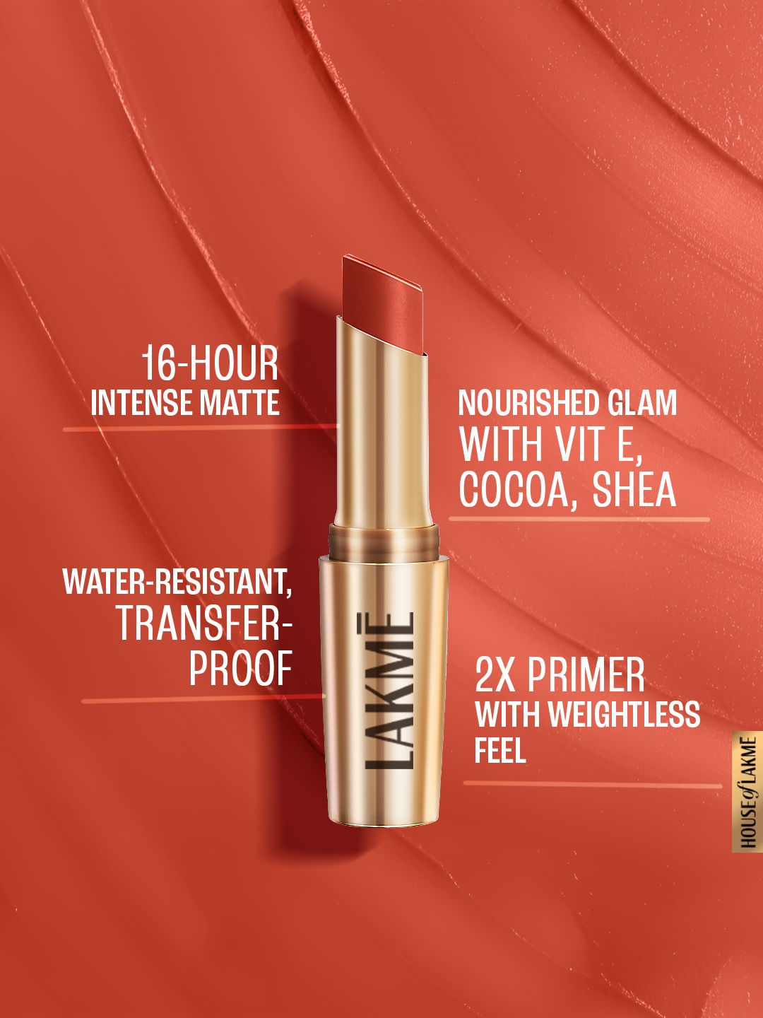Lakme 9to5 Powerplay Priming Matte Lipstick With Vit E Lasts 16Hr 3.6g - Brick Blush