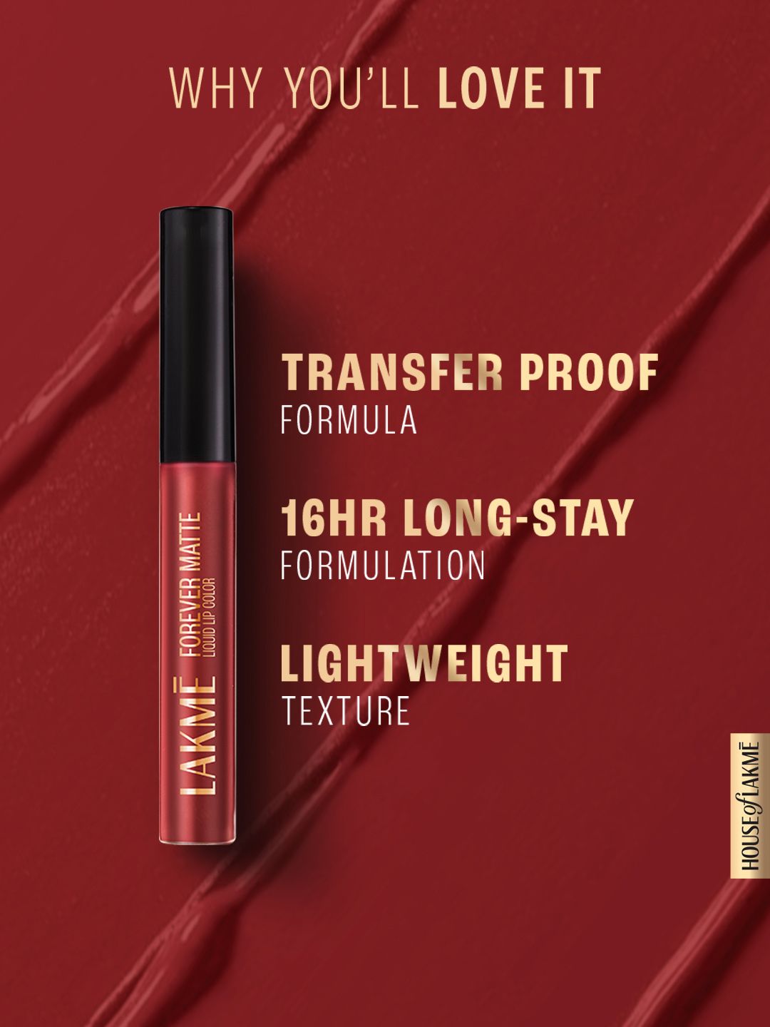 Lakme Forever Matte Lightweight & Transferproof 16Hr Liquid Lipstick 5.6ml - Red Wine