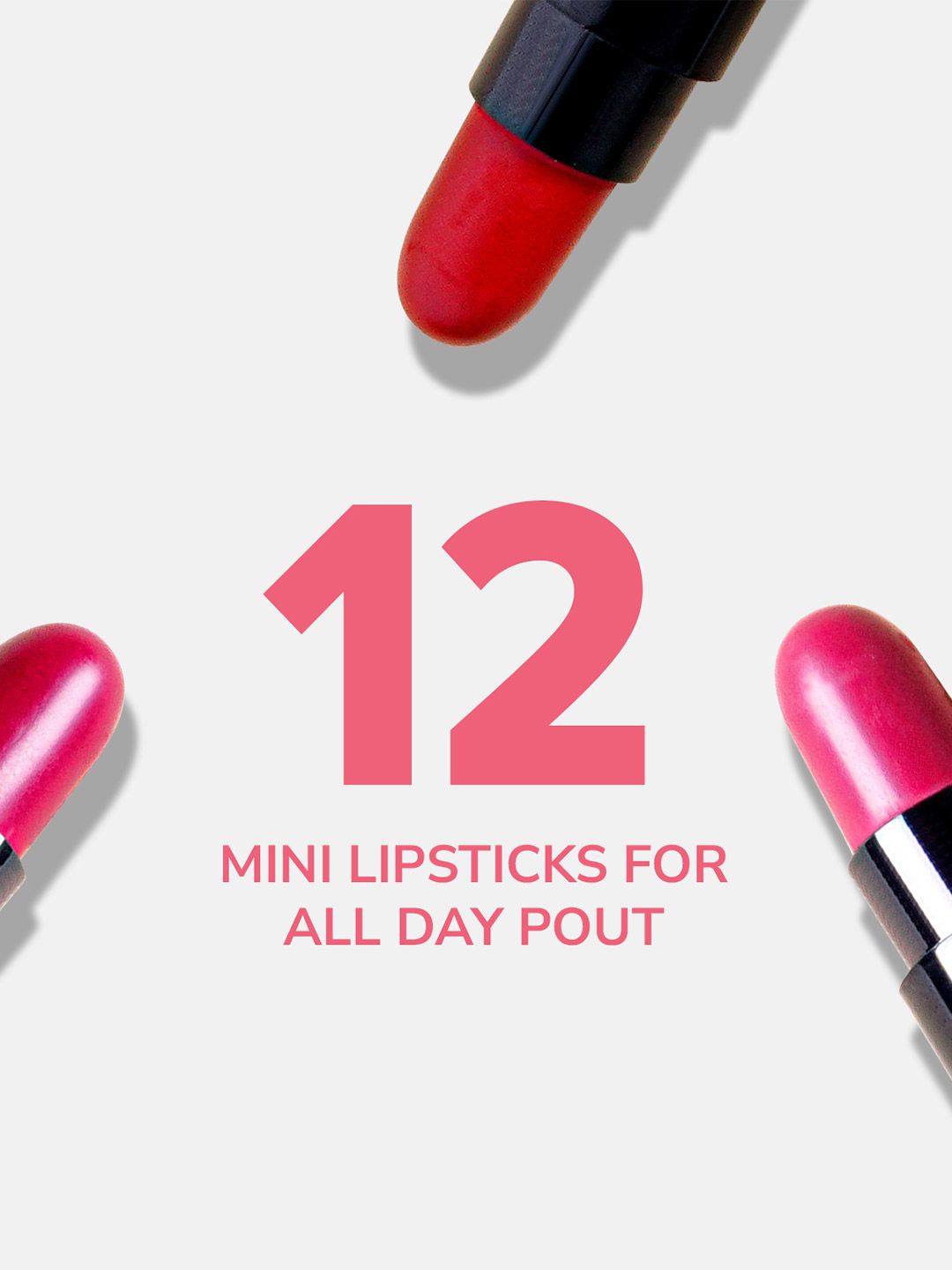 MILA BEAUTE Minis Pout Party Set Of 12 Highly-Pigmented Bullet Lipstick- 4g Each - Shade-A