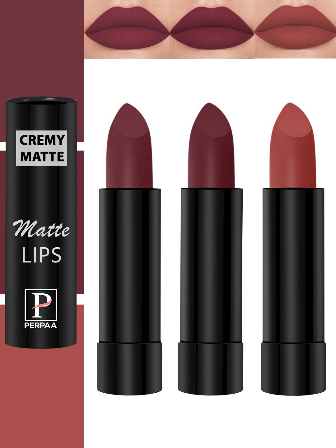 PERPAA Set Of 3 Cremy Matte Long Lasting Bullet Lipstick - Shades 73-80-95