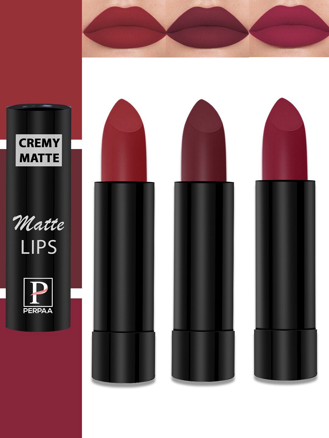 PERPAA Set Of 3 Cremy Matte Long Lasting Bullet Lipstick - Shades 86, 87, 95