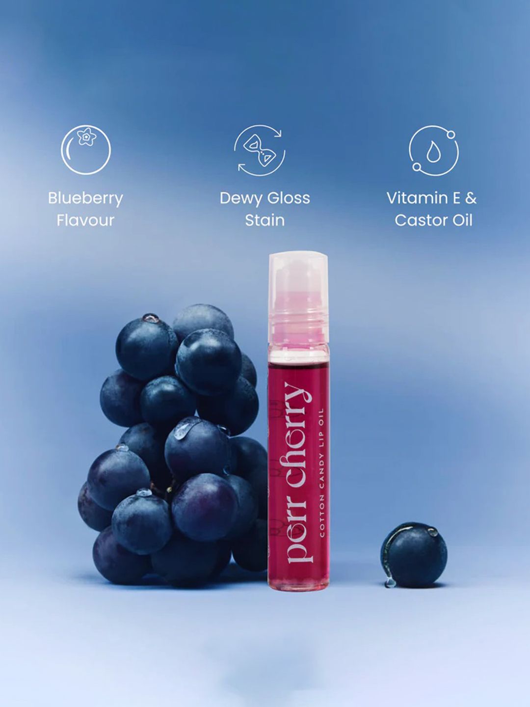 PERR CHERRY Cotton Candy Lip Oil Gloss With Vitamin A - 10 ml- Blueberry