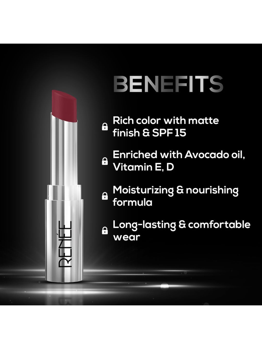 Renee Matte Lock Avocado Oil SPF 15 Lipstick With Beta Carotene & Vitamin E 3.5g - Folk