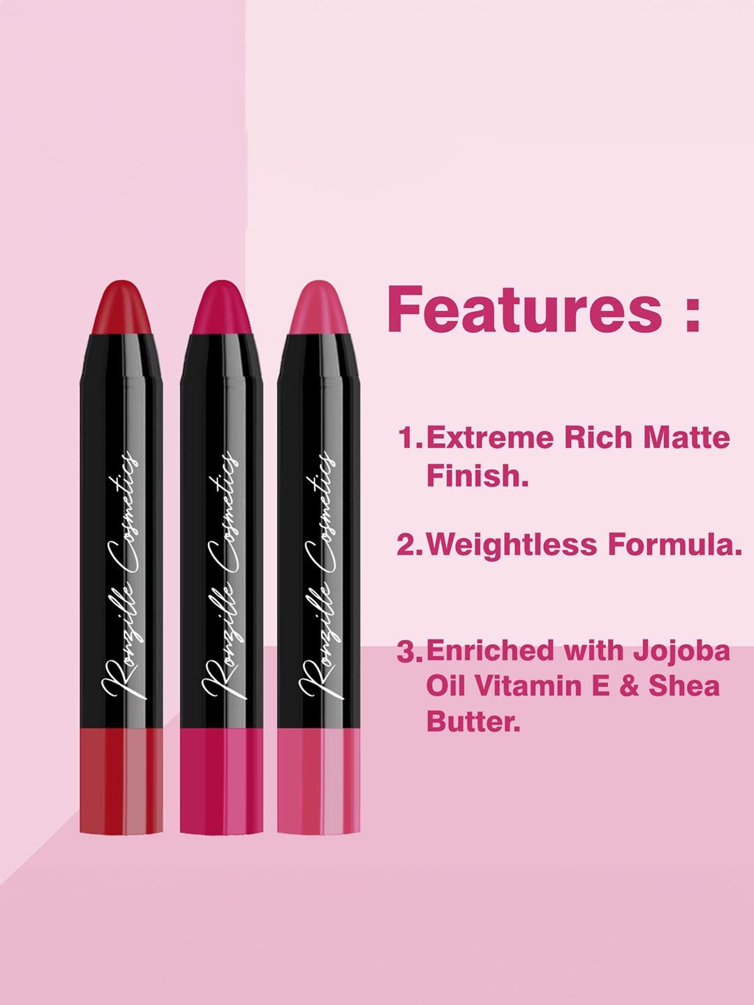 Ronzille Set Of 3 Long Lasting Waterproof Matte Lip Crayon - Shades 1-3-6