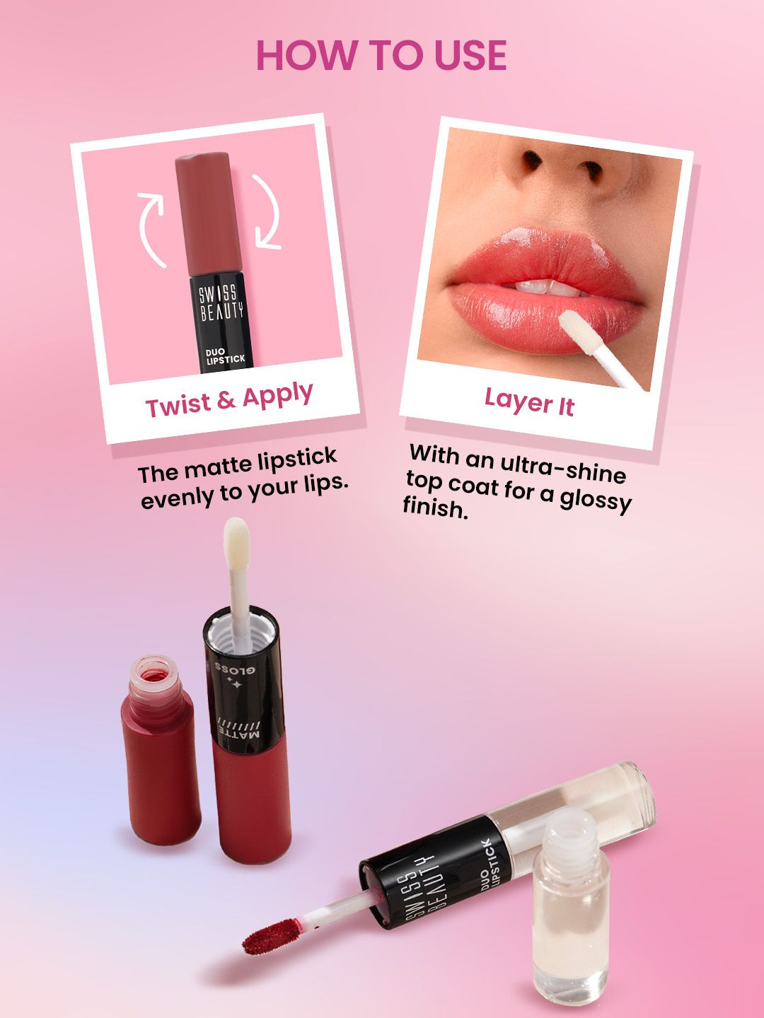 SWISS BEAUTY Long Lasting Transfer Proof Duo Lipstick 10 ml - Candy Pink 04