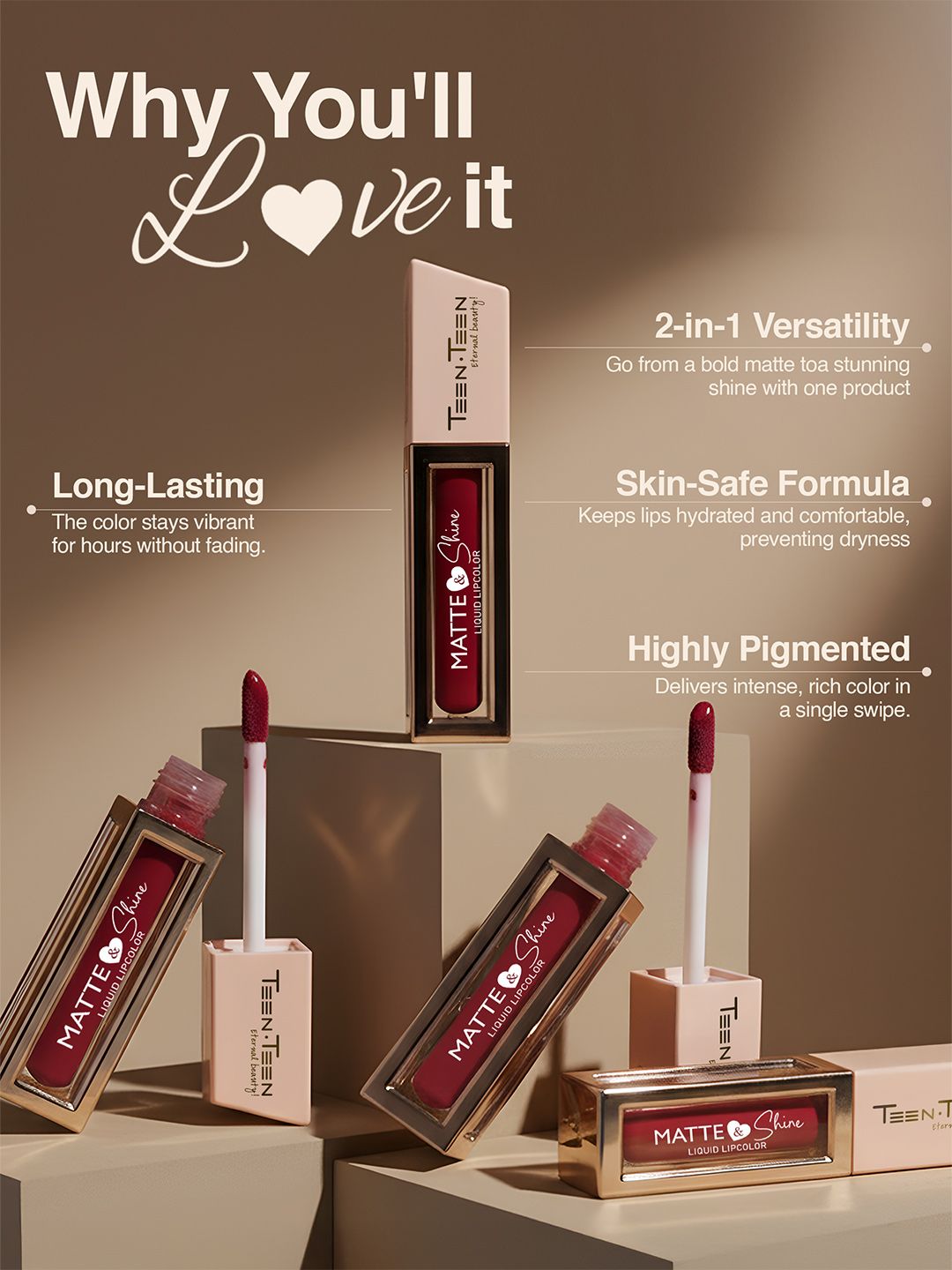 TEEN TEEN COSMETICS Matte & Shine Waterproof Lipstick - 4m - Rumor Has It - 09