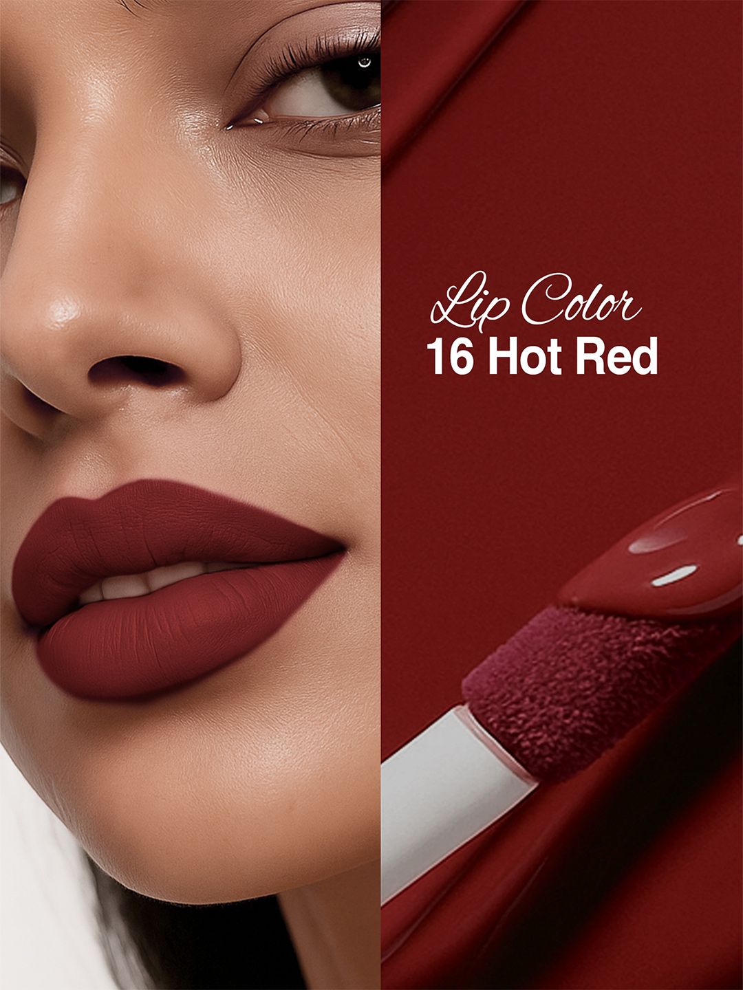 TEEN TEEN COSMETICS Matte & Shine Waterproof Liquid Lip Colour - 4 ml - Hot Red - 16