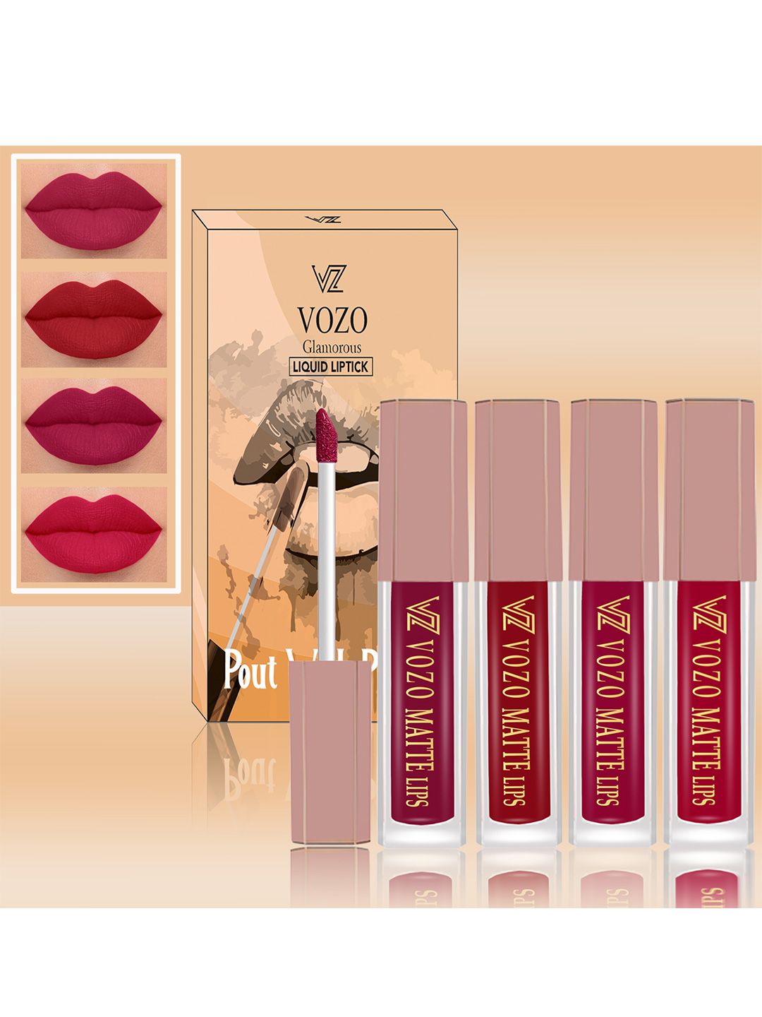 VOZO Set Of 4 Soft & Comfortable Matte Finish Liquid Lipsticks-101-104-105-204